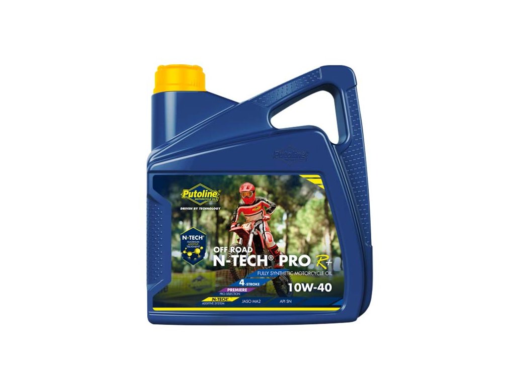 N-TECH® PRO R+ OFF ROAD 10W-40 je najpokročilejší, plne syntetický motorový olej pre 4-taktné motory, aký kedy spoločnosť Putoline Oil vyrobila. Obsahuje jedinečný systém aditív N-TECH®. Motorový olej N-TECH® PRO R+ OFF ROAD zaručuje: Neprekonateľný výkon a priľnavosť mokrej spojky. Mimoriadne nízke opotrebenie motora a prevodovky. Minimálna spotreba oleja. Vynikajúce viskozitné vlastnosti aj pri nízkych teplotách, čo výrazne zabraňuje opotrebovaniu pri studených štartoch. Vynikajúce čistiace vlastnosti zaisťujú dlhodobý a optimálny výkon motora. Vynikajúce mazacie vlastnosti počas celej životnosti. Tento plne syntetický motorový olej pre 4-taktné motocykle bol navrhnutý špeciálne pre terénne a súťažné motocykle, ktoré fungujú v tých najnáročnejších podmienkach.