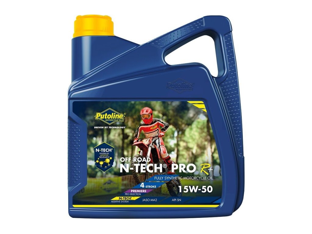 N-TECH® PRO R+ OFF ROAD 15W-50 je najpokročilejší, plne syntetický motorový olej pre 4-taktné motory, aký kedy spoločnosť Putoline Oil vyrobila. Obsahuje jedinečný systém aditív N-TECH®. Motorový olej N-TECH® PRO R+ OFF ROAD zaručuje: Neprekonateľný výkon a priľnavosť mokrej spojky. Mimoriadne nízke opotrebenie motora a prevodovky. Minimálna spotreba oleja. Vynikajúce viskozitné vlastnosti aj pri nízkych teplotách, čo výrazne zabraňuje opotrebovaniu pri studených štartoch. Vynikajúce čistiace vlastnosti zaisťujú dlhodobý a optimálny výkon motora. Vynikajúce mazacie vlastnosti počas celej životnosti. Tento plne syntetický motorový olej pre 4-taktné motocykle bol navrhnutý špeciálne pre terénne a súťažné motocykle, ktoré fungujú v tých najnáročnejších podmienkach.